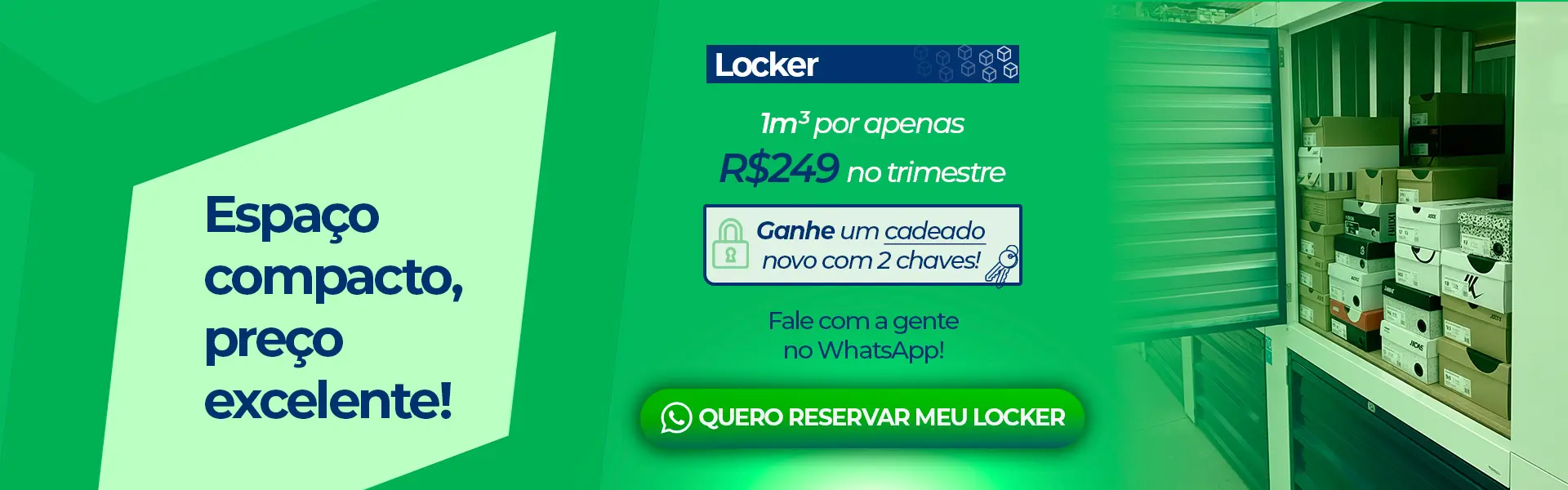 Espaços que vão de 3m² até 13m² onde você aluga aquele que for mais adequado.